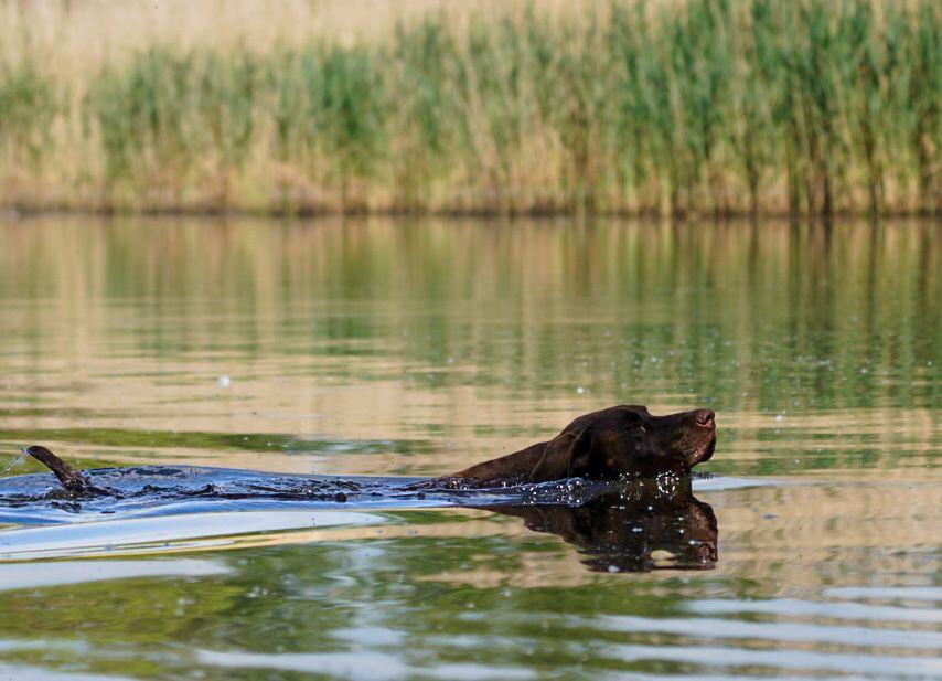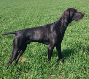 ZB-Nr. 1153/19, Brschl. m. Pln., gew. 19.07.2019, Aki, genannt Odin, ist mit seinen 67 cm ein kapitaler, als auch bildhübscher junger Rüde, der allein durch seine Erscheinung und sein Wesen hervorsticht. Dieser tiefdunkel pigmentierte Rüde bringt enormen Arbeitswillen und Passion mit, egal ob im Feld oder Wasser oder Wald. Im Wasser zeigt er hervorragende Härte und arbeitet selbständig und ausdauernd, im Feld zeigt er wunderschöne Vorstehmanieren, gepaart mit raumgreifender Suche und feiner Nase. Es macht nur Freude, ihm bei der Arbeit zuzuschauen. Aki ist absolut sozialverträglich und beweist dies zu jeder Zeit und ist daher gern gesehener Gast; gegenüber Artgenossen ist er frei von Aggression und ausgesprochen ausgeglichen und lebt in einem großen Familienverband mit Kindern und Katzen auf einem Hof. Dieser Burgfrieden hält ihn jedoch nicht von seiner kompromißlosen Härte ab, die er im Jagdbetrieb gegenüber Waschbären zeigt. Der Rüde bringt Blutanschluss an altbewährte Linien: Hege-Haus, Rothenuffeln, Wittekind, Theelshof. Er stammt aus einer sehr leistungsstarken Verpaarung aus: Osma vom Peenestrom nach Dorian von den Donaumündungen. Alle Welpen aus der Verpaarung sind absolut wesensstark, ausgeglichen, tief dunkel pigmentiert mit ausgeprägter Ramsnase und einem enormen Arbeitswillen. Bei Deckanfragen könnt ihr euch sehr gerne bei uns melden: Zwinger vom Gründer Eck,