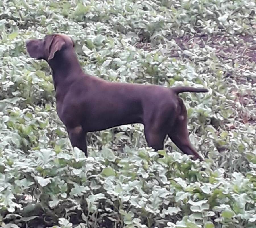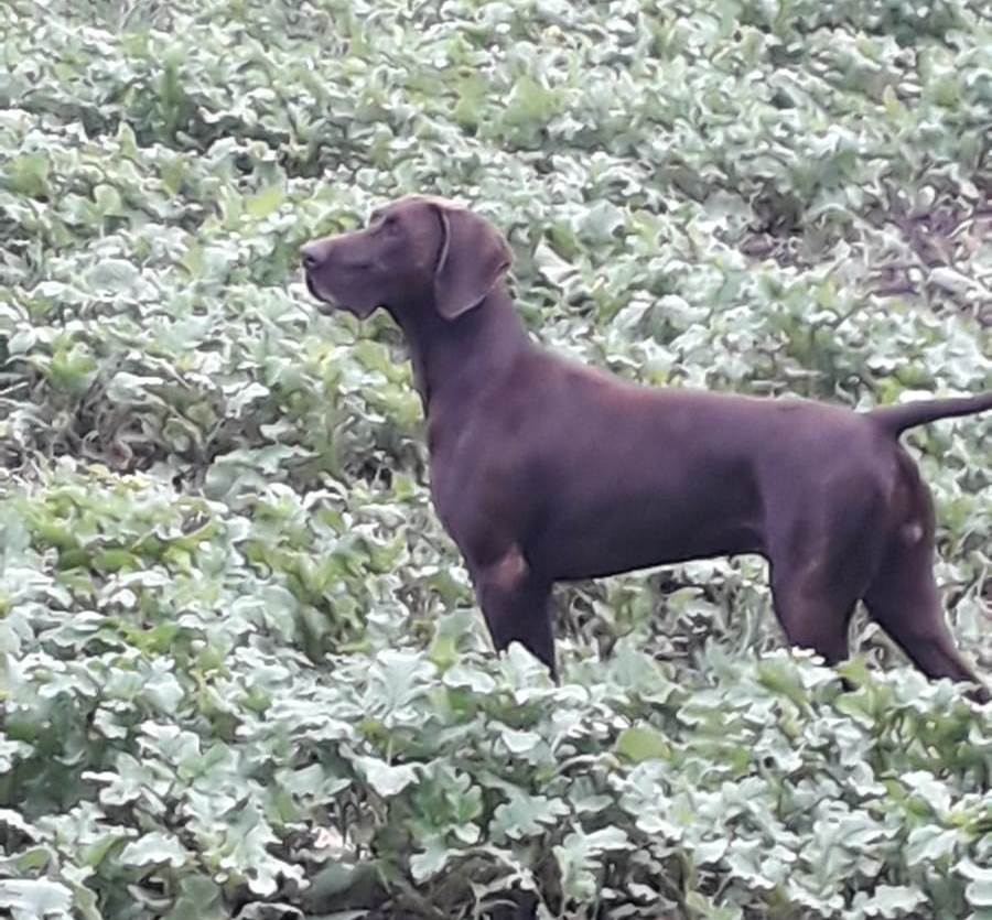 Einar Karlsonson Anima unaZB Nr.: 1064/18 DGSTB: 73446•Derby 1.Preis(3x4h),VJP 76PS1,VGP321 P ÜF (2x4h);STPK 3.Preis; Nord Bohemia Pokal 2.Preis; ÖKK 398P 1c; BP ABCE; HN;LN;SJ;AH;BTR;VBr; Bester Hund 2019 DK Stammklub Berlin, DK Oderland•Formwert: V4, German Junior Winner; VDH Jugend Champion; Alpenjugendsieger; Jugendsieger ;Hannover Jugendsieger, Annual Trophy Sieger; Erfurt Jugendsieger ; HD A2, OCD frei, Willebrand/JEB frei; 65 cmEinar ist ein kräftiger Rüde des Mittelschlags mit schönem Rüdenkopf, kräftigen Hals, geraden Rücken, gut angesetzte und getragene Rute, Unterlinie mit langem Brustbein, sehr gute Vorderbrust, sehr schöne Aufrichtung, in der Winkelung und im Bewegungsablauf korrekt. Die Prüfungsergebnisse sprechen für diesen jungen Rüden und seine außergewöhnlichen Anlagen. Sein sehr ruhiges und ausgeglichenes Wesen heben diesen Rüden hervor. Die hohe Arbeitsfreude gepaart mit einem ausgeprägten Finderwillen zeigt er auf der Jagd/Üben regelmäßig in einem mit Hasen und Fasanen besetzten Niederwildrevier. Schnelle raumgreifende Suchen (4h), unter Einsatz seiner sehr feinen Nase(4H) lassen Einar rasch an das Wild kommen. Seine Manieren und wunderbaren Vorstehbilder sprechen für sich(4h). Bindung und Gehorsam sind hervorragend. Am Raubwild kompromisslos und zu sich selbst hart. Die Sauen arbeitet er intelligent, selbstbewusst, ohne sich selbst zu gefährden. Er ist ein sehr angenehmer, selbstsicherer, wesensfester Kamerad. Regelmäßig ist er unter Artgenossen und Menschen. |