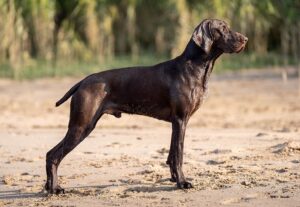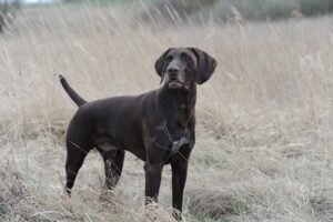 Jäger ist ein dunkelbrauner Rüde des Mittelschlages mit Adel, trocknen Hals dunklen Augen und gut
