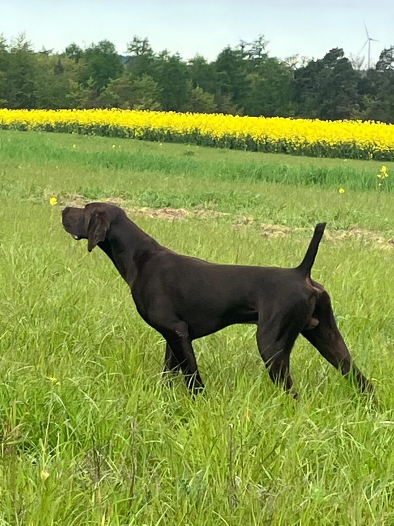 Er ist absolut familientauglich, ruhig im Haus und im Auto, im jagdlichen Einsatz ein super verlässlicher Begleiter.